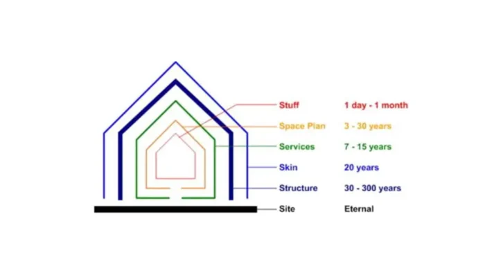 Verbind losmaakbare details met het omliggende bouwsysteem. Scheid gebouwlagen met verschillende levensduren volgens de Layers van Stewart Brand.
